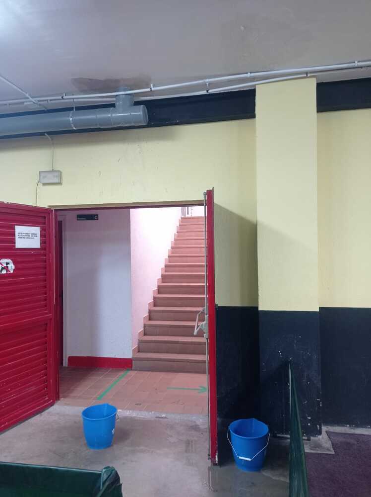 Intentar solucionar totes les goteres del local del club tennis taula sallent, que provenen de la part superior (entrada del pavelló) i de les canonades que recullen l'aigua de mateixa entrada del pavelló.